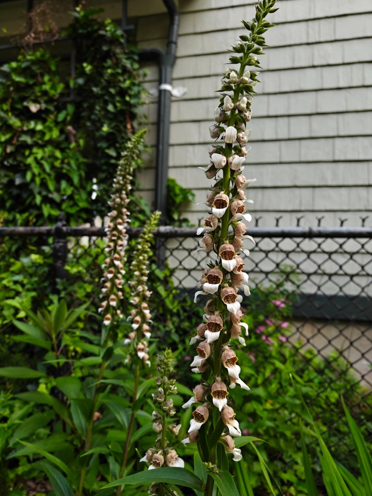 A stately rusty foxglove, Digitalis ferruginea, I found at a local vendor at the Brighton Farmer’s Market grew to be 4′ tall earlier this summer.