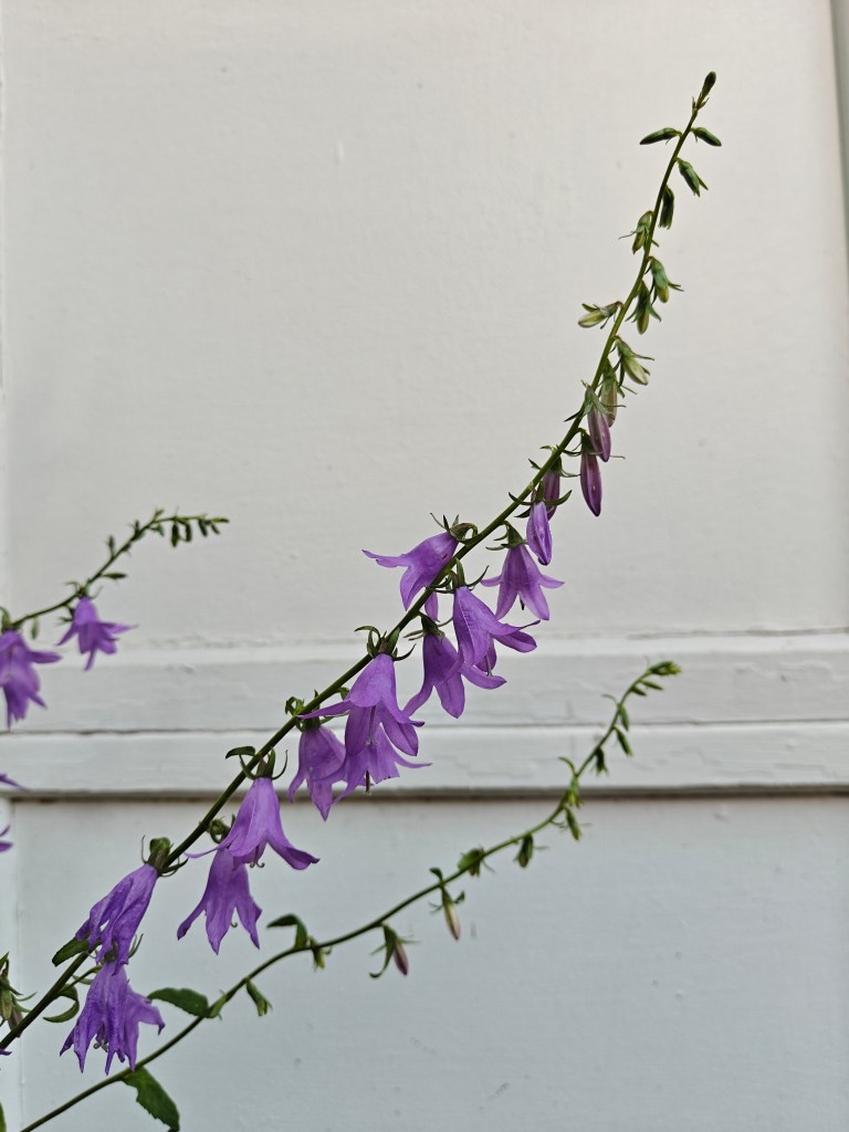Our neighborhood was beset by this pretty but devastating flower that appeared in many yards this year. Creeping bellflower, Campanula rapunculoides, is extremely invasive, spreading by both seed and roots. We had a couple of plants on the property when we moved in August of 2022 and, uneducated, last year I allowed it to seed itself all over the north beds I had just reclaimed from weeds and invasive species.
